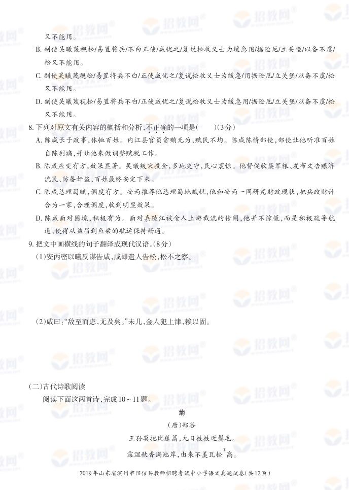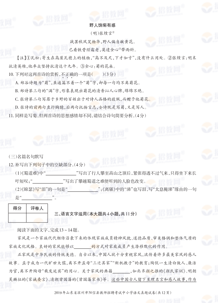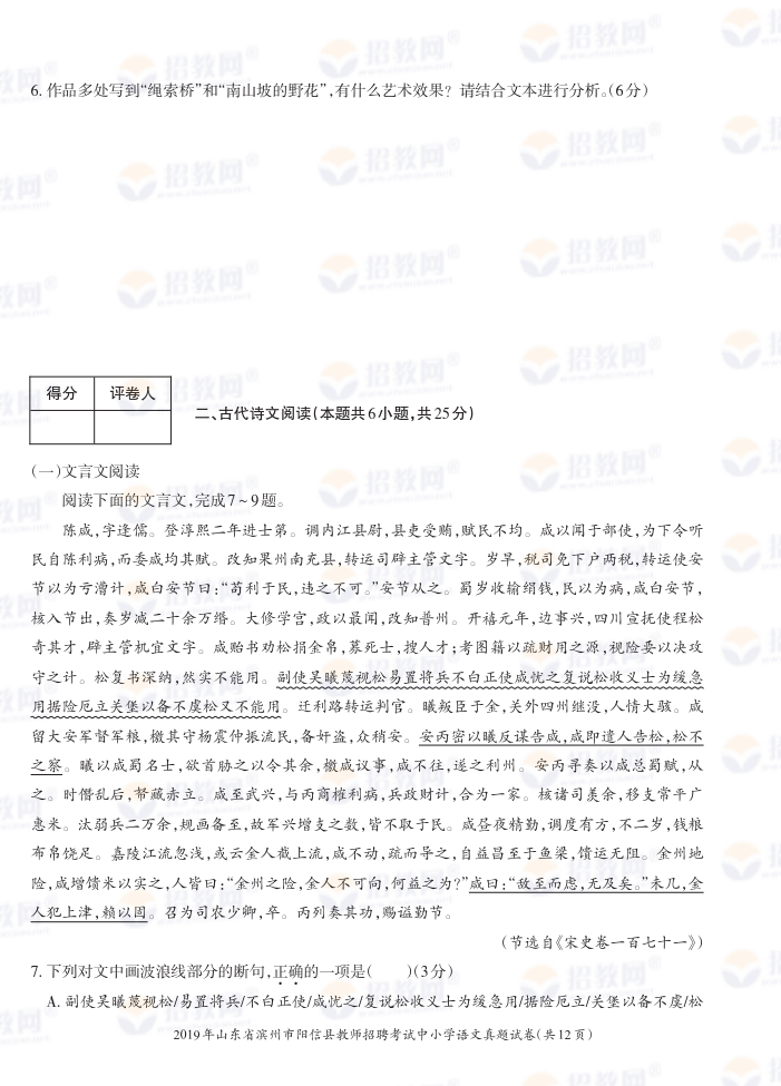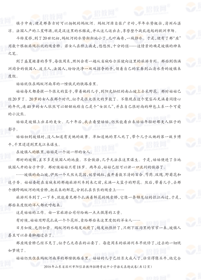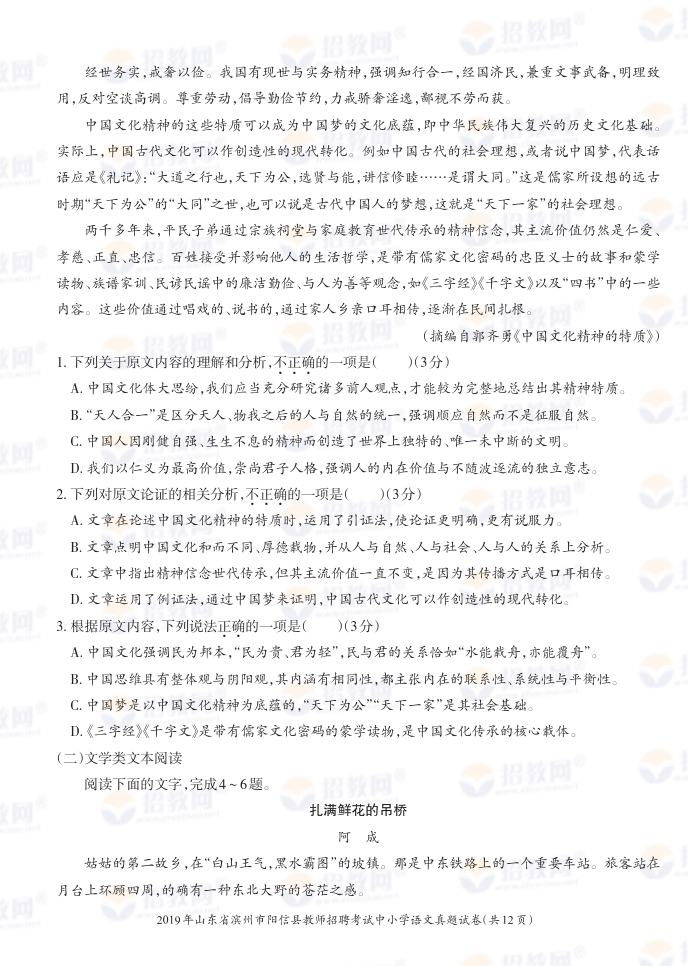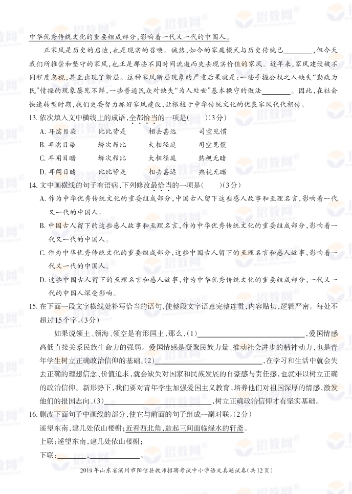 2019年山东滨州市阳信县教师招聘考试中小学语文试题试卷及答案解析-威尼斯5994