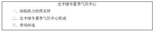 1.能运用海陆热力性质差异原理,解释北半球冬、夏季气压中心的形成和分布;会解释季风环流对气候的影响。