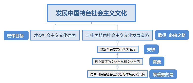 即:走中国特色社会主义文化发展道路,向着建设社会主义文化强国宏伟目标前进,关键是增强全民族文化创造力。为此,需要树立高度的文化自觉和文化自信。(必要性)