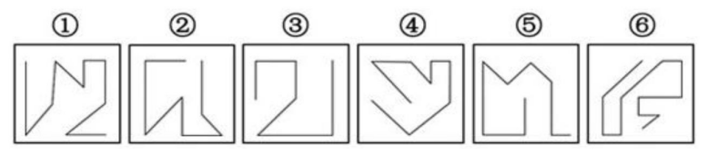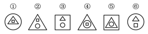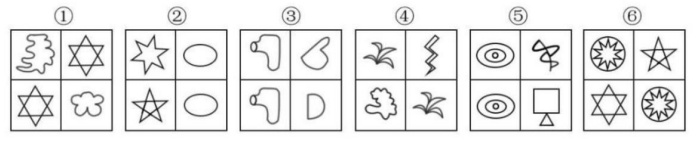 ①④⑥相同图形间位置关系为相隔,②③⑤相同图形间位置关系为相邻